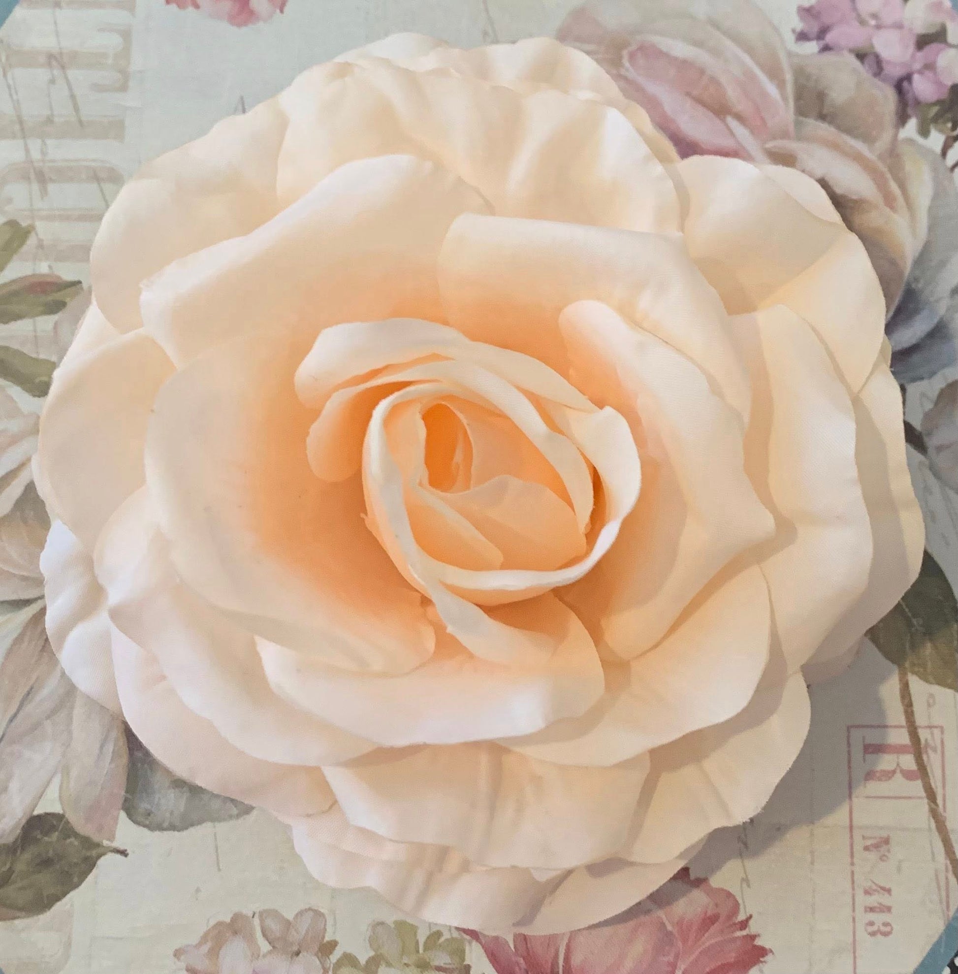 All of my medium sized hair flowers are approximately 4 inches in diameter and are also placed on a durable 45mm metal alligator clip.