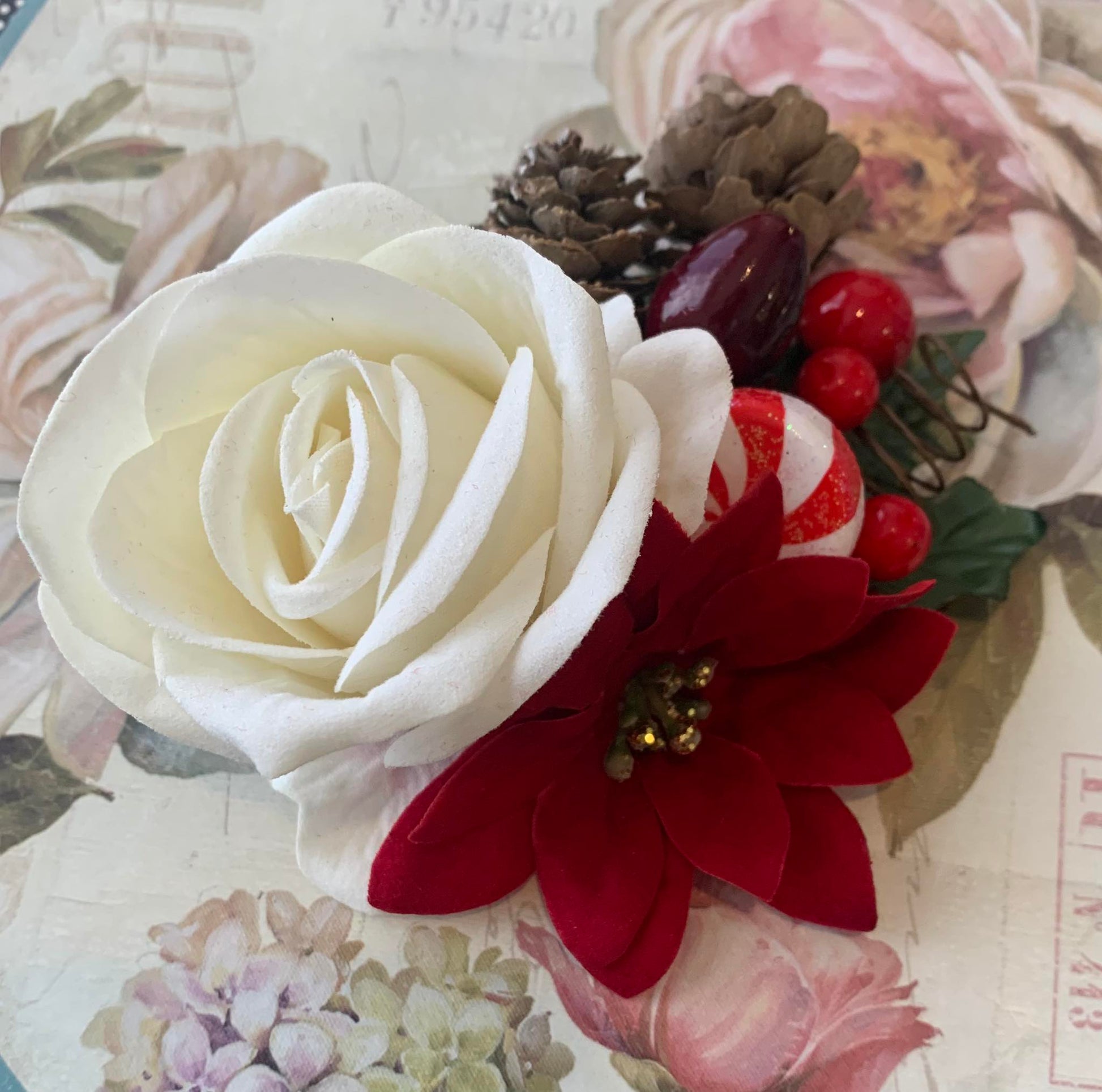 The small Poinsettias are approximately 2.5 to 3 inches in diameter. All have a heavy duty, durable alligator clip for a secure fit.