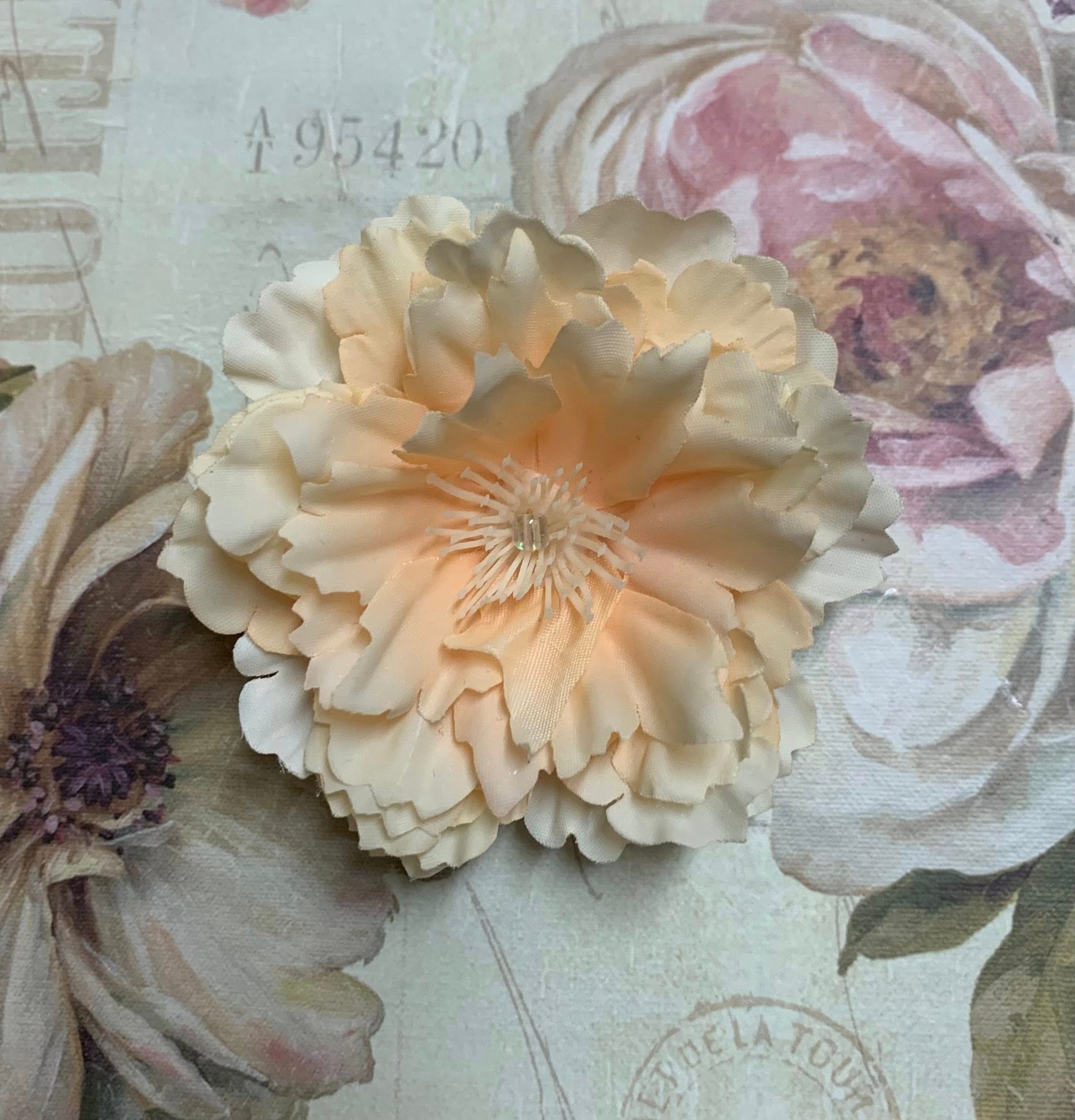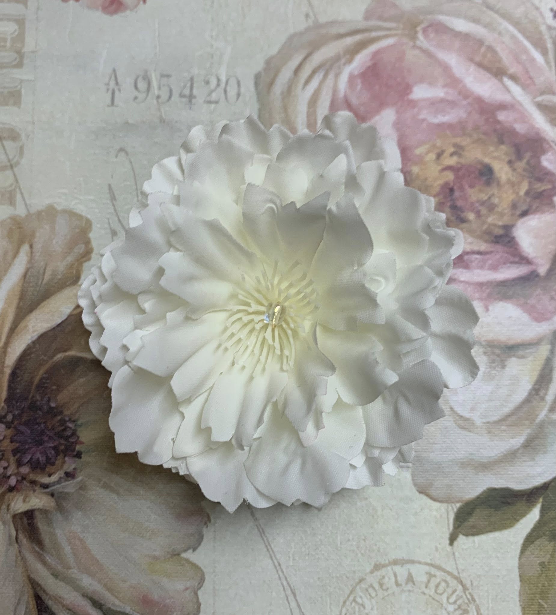 These are classic hair flowers made to withstand constant wear. I use flexible wire to ensure a long hair flower life. I stay true to the flower without using a ton of glue to weight them down. All of my new hair flowers are branded.
